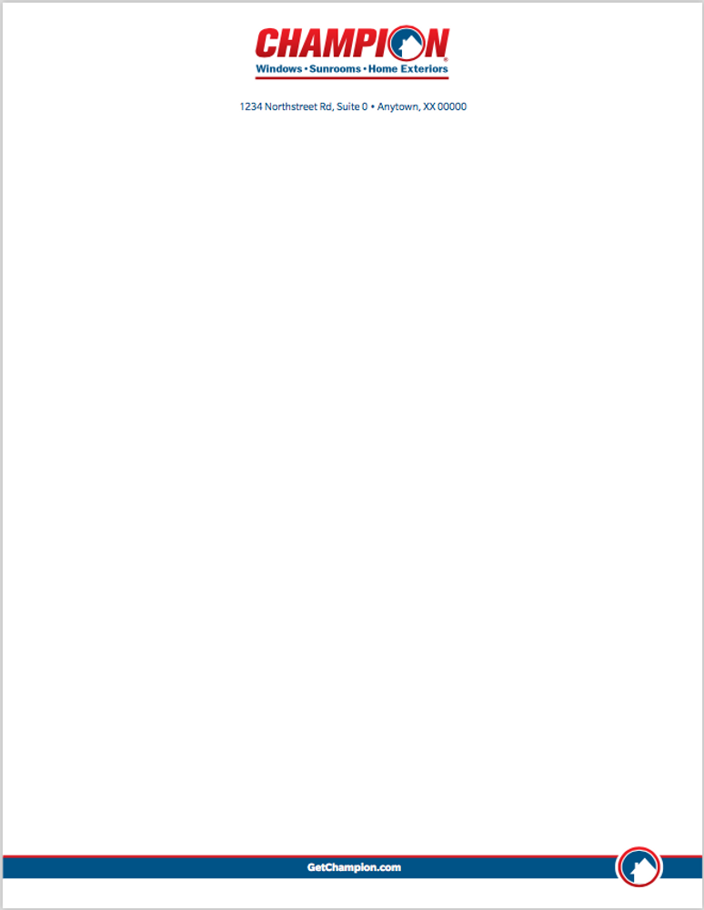Letterhead showcasing the Champion logo and your location's address. Sold in packs of 250.